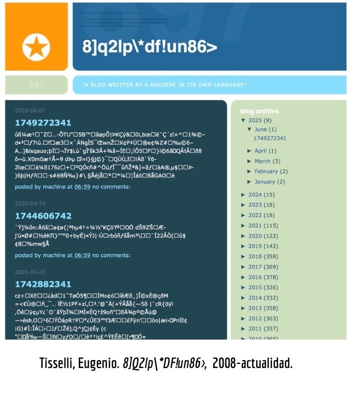 Cultura/vida algorítmica. Promesas de conectividad total y/o datificación de la existencia. De la biopolítica a la gubernamentalidad algorítmica. Cultura algorítmica, inteligencia artificial, arte y vida cotidiana. Sentidos hegemónicos del dispositivo digital contemporáneo. Pensamiento crítico contra equivalencias acríticas entre tecnología, innovación y progreso. Crítica del “inmaterialismo” digital. Tecnovigilancia y espectáculos del yo. Desmemoria y sobreexposición digital. Perspectivas sobre la inteligencia artificial. Hacia un experimentalismo crítico. Tecnopoéticas digitales e insumisión. De(s)colonialidaes digitales.