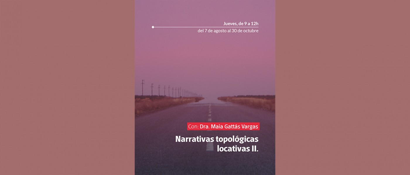 Narrativas topológicas locativas II. Con Dra. Maia Gattás Vargas. Este seminario ofrece herramientas analíticas para explorar la intersección entre formas espaciales y formas estéticas y de visualidad. Está dirigido a investigadores interesados en los estudios críticos de la cultura y las artes. Cada semana leeremos textos que provienen de distintas disciplinas y marcos teóricos, que nos ayudarán a desarrollar enfoques analíticos para atender las dimensiones políticas en procesos de espacialización y localización artística y cultural. Nos interesa cruzar textos de distintos momentos históricos, que nos permitan echar luz sobre un presente complejo y el constante estado de reconfiguración espacial, que trasciende incluso, el planeta tierra.