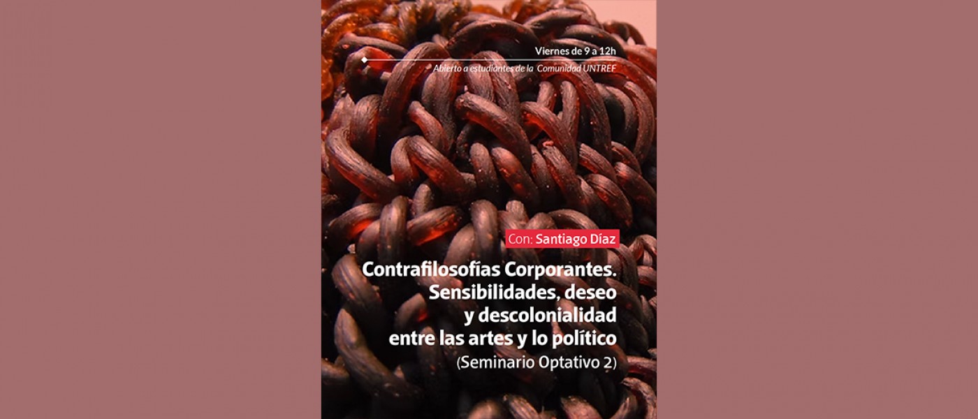 Contrafilosofías Corporantes. Sensibilidades, deseo y descolonialidad entre las artes y lo político. Con Santiago Diaz. Creemos que ante la evidente crisis global, territorial y existencial a la que nos arrastra este sistema capitalístico-colonizante, nos inquieta profundizar en las tramas epistémico-estéticas y políticas con las que se tejen las formas-de-vida en sus líneas sensibles y perceptivas, a la vez que deseamos tejer colectivamente un pensamiento activo para componer herejías perfopolíticas y gestos de resistencias artísticas. Pensar el deseo como potencia teratogénica de creación viviente, habitado desde un posicionamiento descolonizante, es nuestro mayor interés para esta formación epistémico-vital en artes y tecnoestéticas.